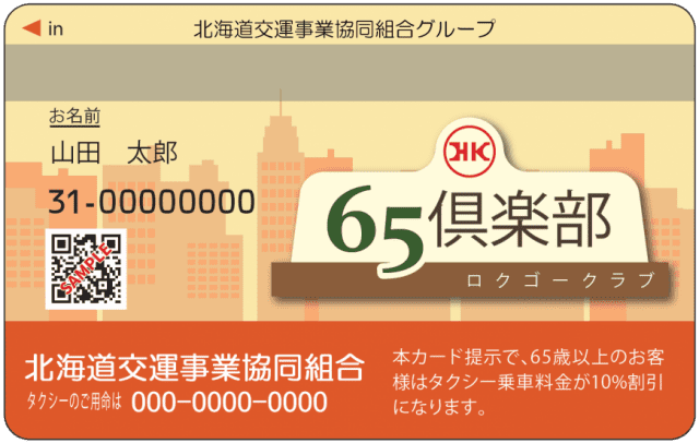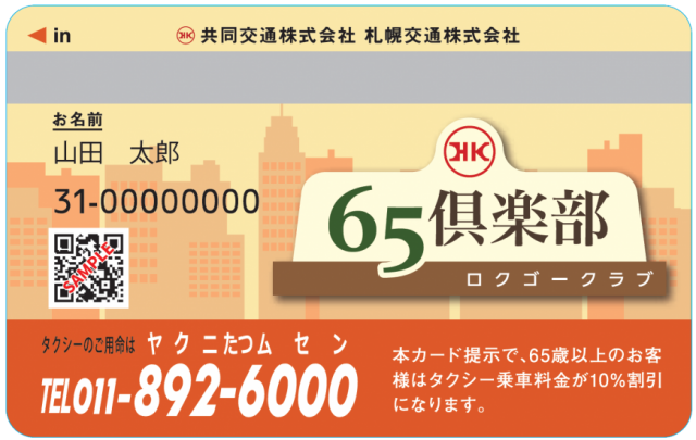The HK65 Club Card offers a 10% discount on taxi fares at all HK Group member companies in Hokkaido and Tohoku.