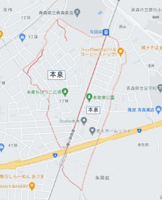 Main applicable areas of Gappo Park and Aomori Prefectural Central Hospital area