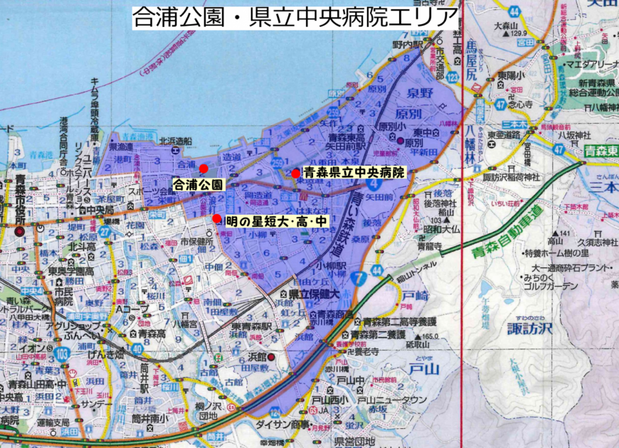 Main applicable areas of Gappo Park and Aomori Prefectural Central Hospital area