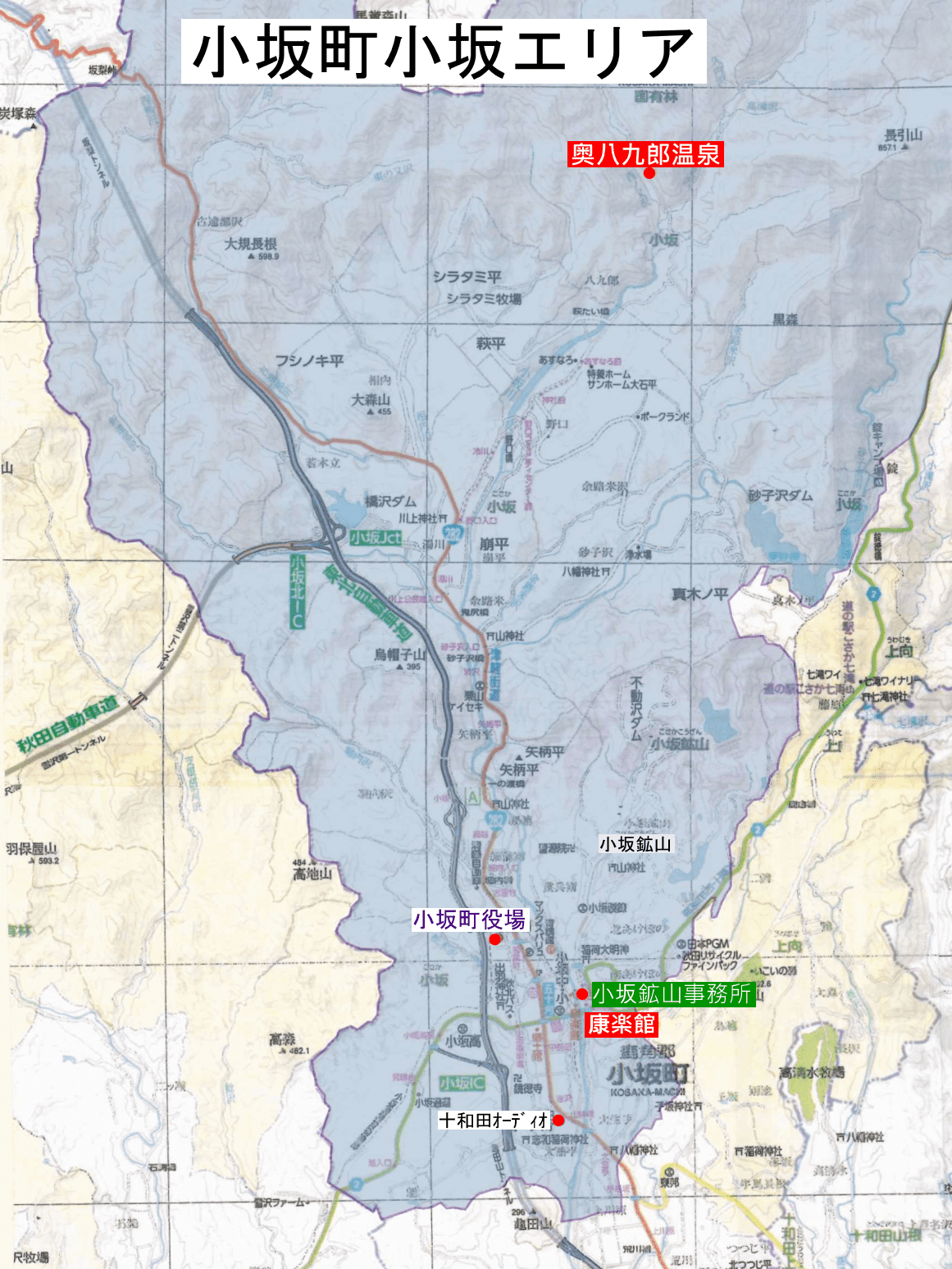 Main town name | Kosaka Town Kosaka and Kosaka Town Kosaka Mine (as shown in the area map) |