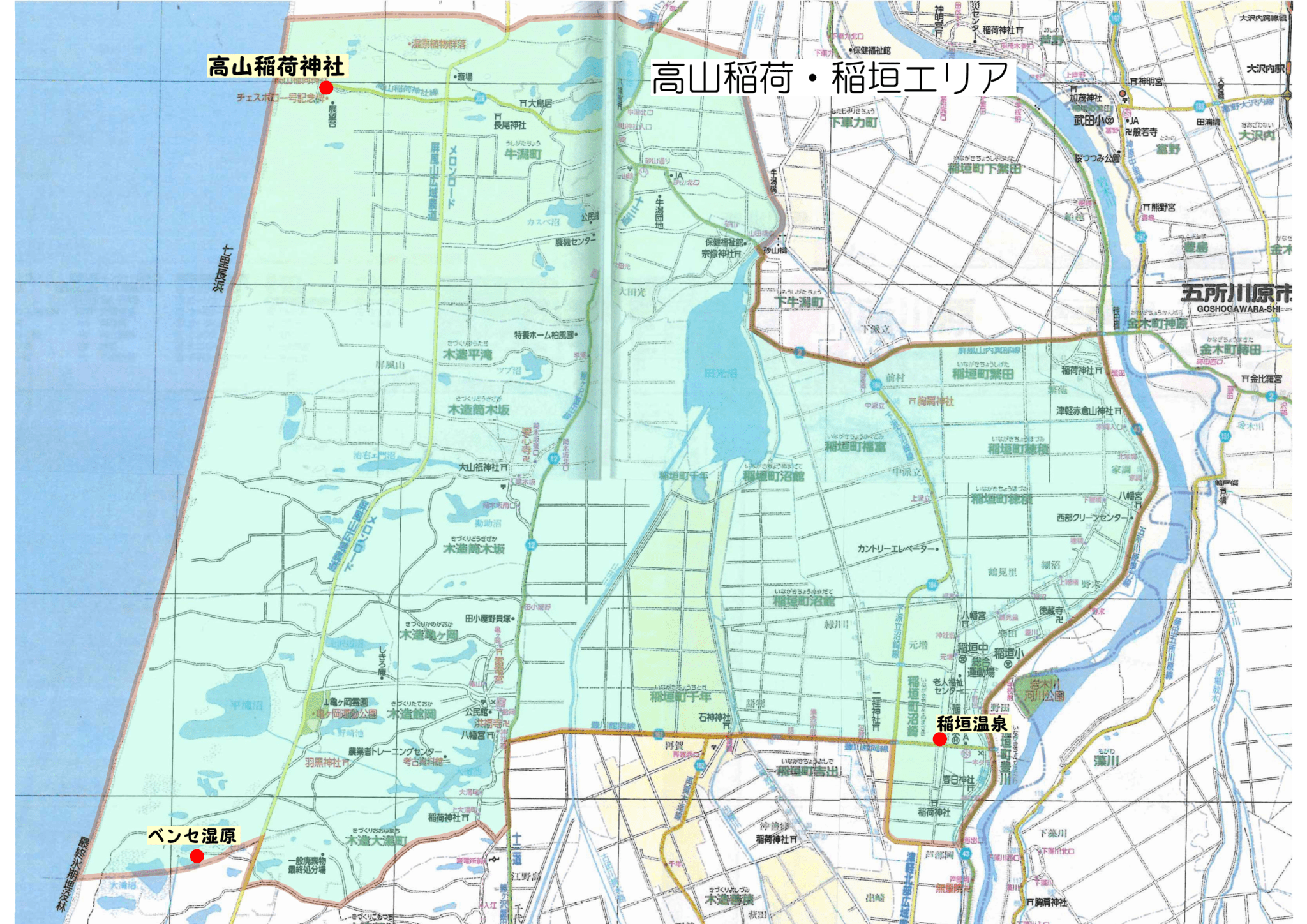 Main facilities Hotels | Main facilities: Takayama Inari Shrine, Chesborough Monument, Bense Marsh, Dekishima Beach Hotel: Inagaki Onsen Hotel Kagetsutei Yayoi Ikoinosato |