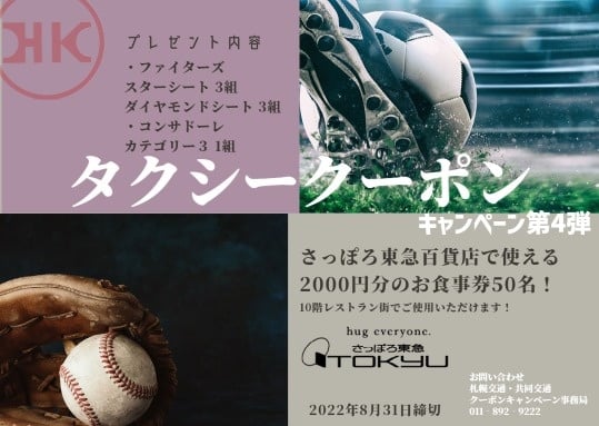 Purchase a taxi coupon of 5,000 yen or 10,000 yen, paste the bar code on the cover to the application postcard and send the stamp.
