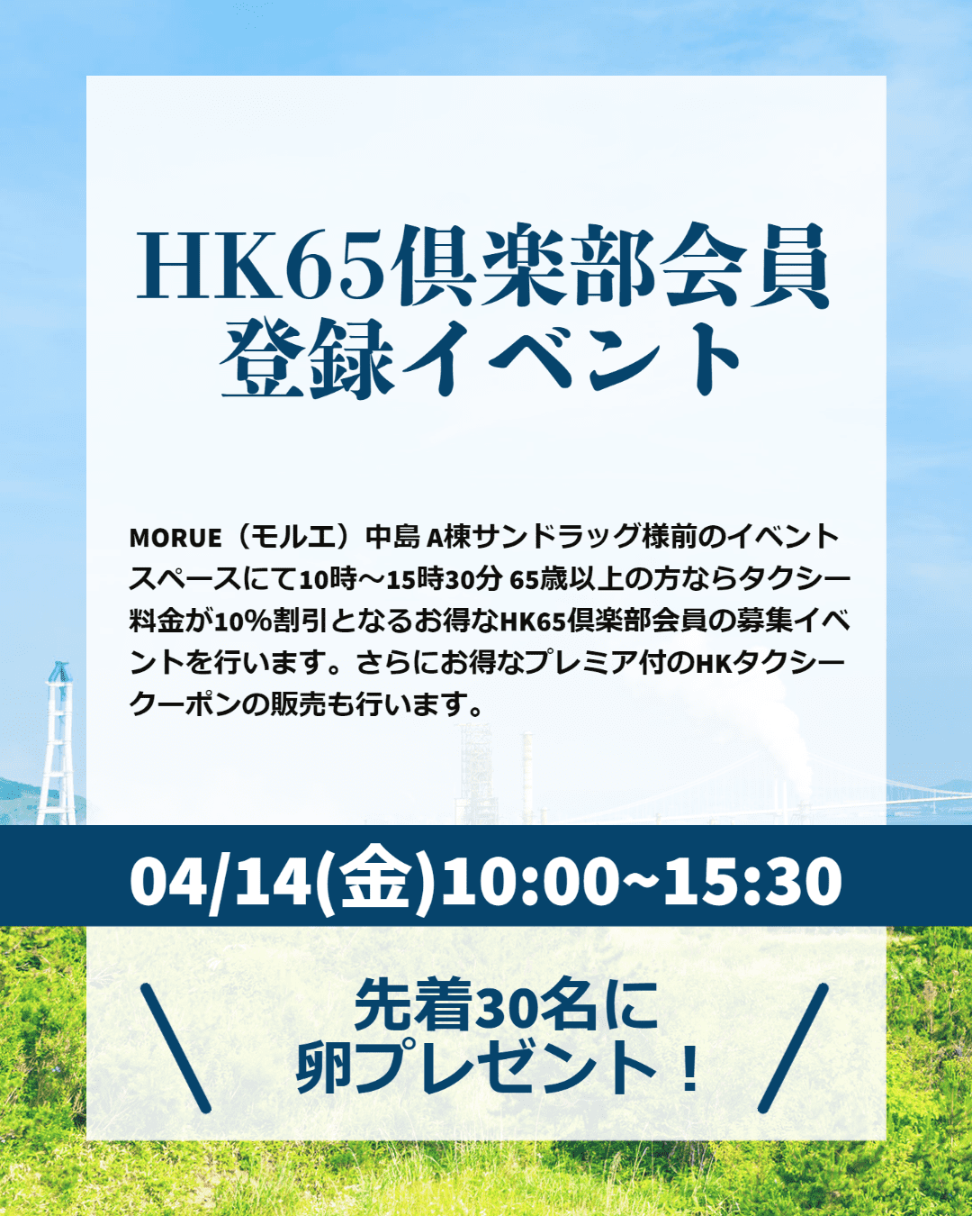 On Friday, April 4th, we will hold an HK14 club member recruitment event in front of MORUE Nakajima Building A Sundrug! !