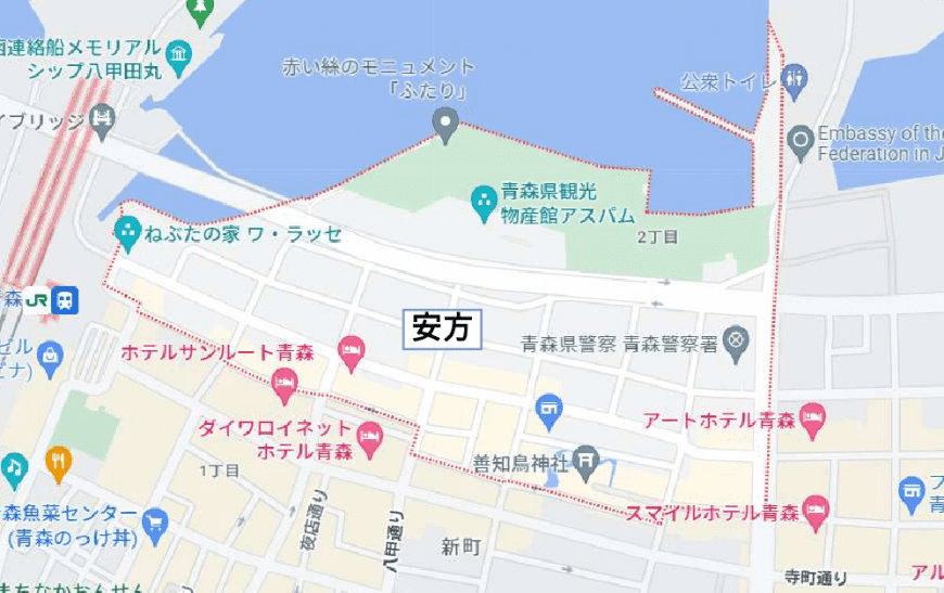 Taxi fares from Aomori Airport to Yasukata, Aomori City, where Nebuta House Wa Rasse, Aomori Prefectural Tourist and Product Center Aspam, Nebuta Lasse Land, Aoimori Park, Aoimori Park, Zenchitori Shrine, Aomori Police Station, Aomori Prefectural Fisheries Building, etc. Aomori Taxi's fixed-rate taxi is safe and affordable.Usually, the meter fee is 4,540 yen from Aomori Airport to Nebuta House Wa Rasse, but we will send you a flat rate of 3,000 yen.