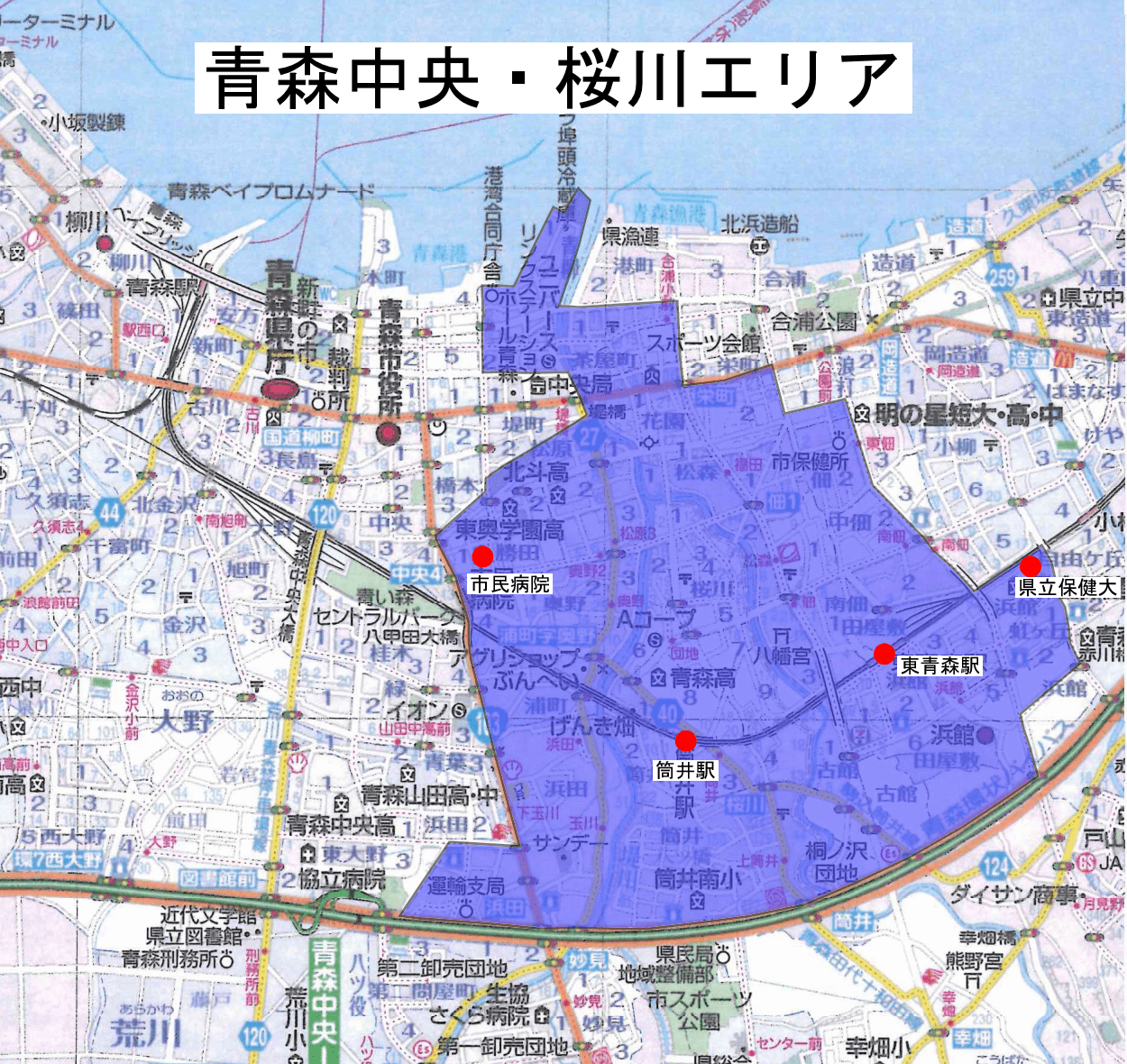Main areas of application in the Aomori Chuo/Sakuragawa area