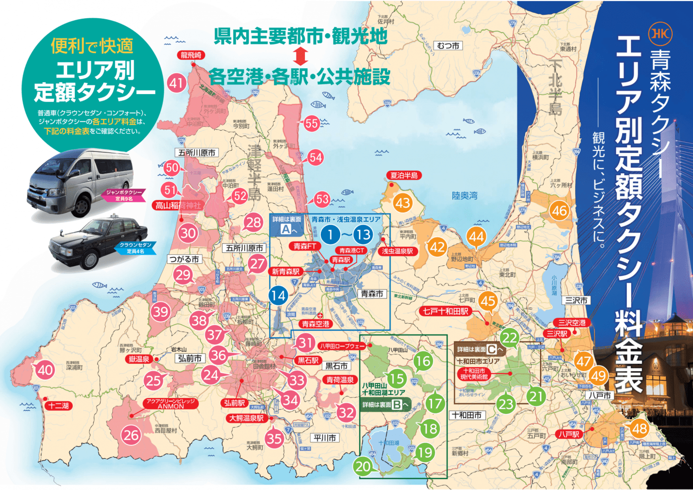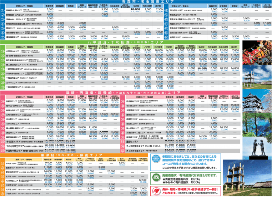 Fixed fare | Aomori Taxi | Cheap and convenient fixed fare taxi for sightseeing and business transportation within Aomori Prefecture