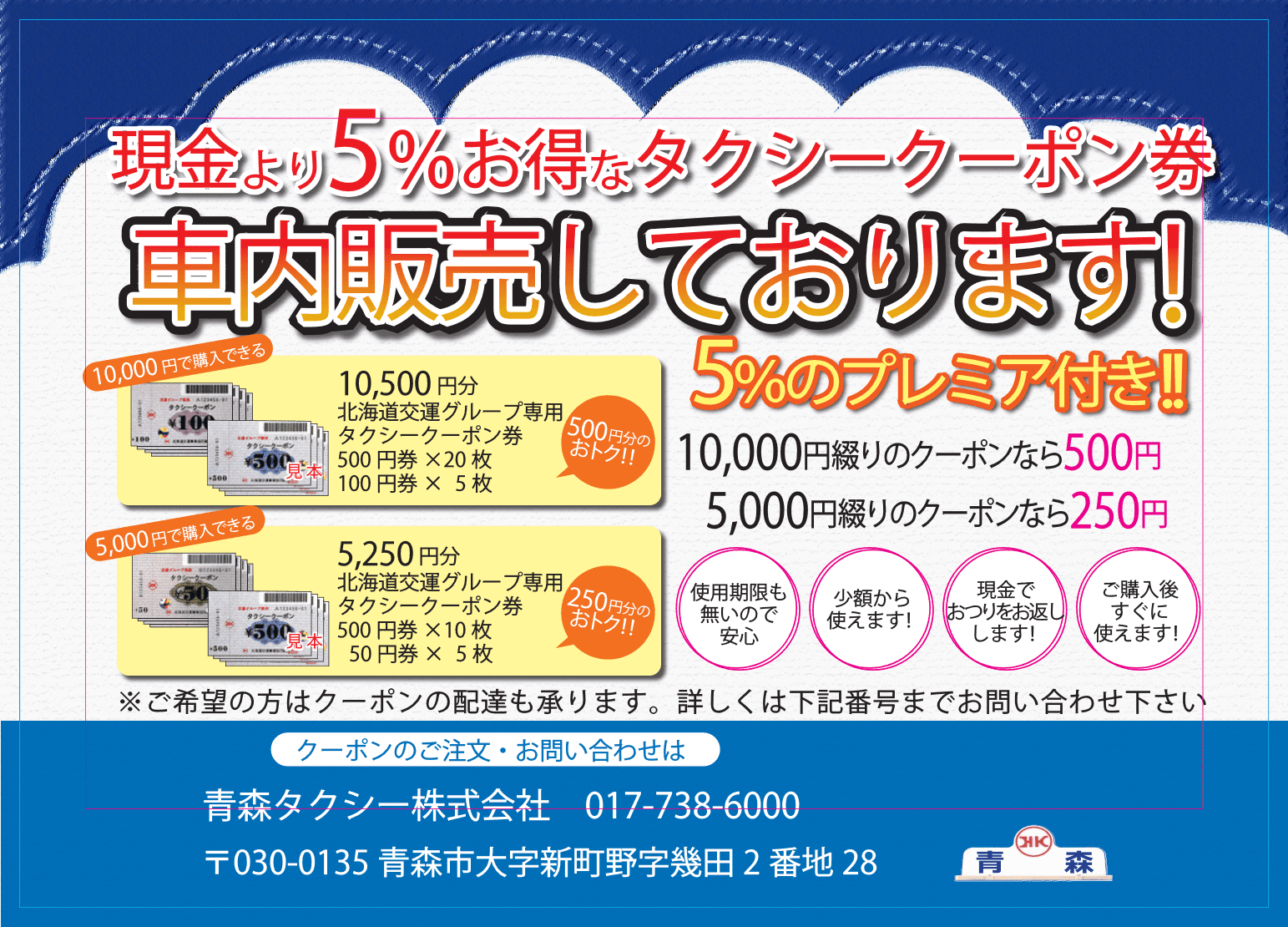Taxi Coupon | Aomori Taxi | Taxi Coupon 5% cheaper than cash payment