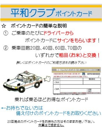 ・Points can be exchanged for small gifts (rice) for 20, 40, 60, or 70 rides.