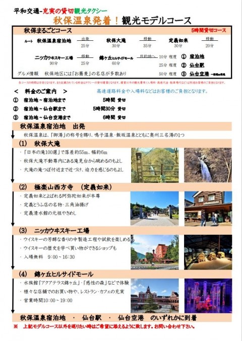 홋카이도 교운사업 협동조합의 평화 교통-아키호 온천 발착!관광 모델 코스입니다