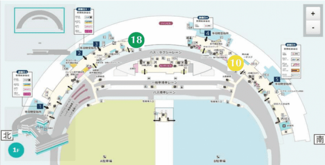 지도상, 10번(JAL, 스카이 마크, 후지 드림 에어라인즈)를 이용하신 손님은 이쪽으로 기다려 주세요.