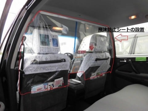 ・後部座席と運転席を隔てる飛沫防止シート、全面防犯ボードの設置