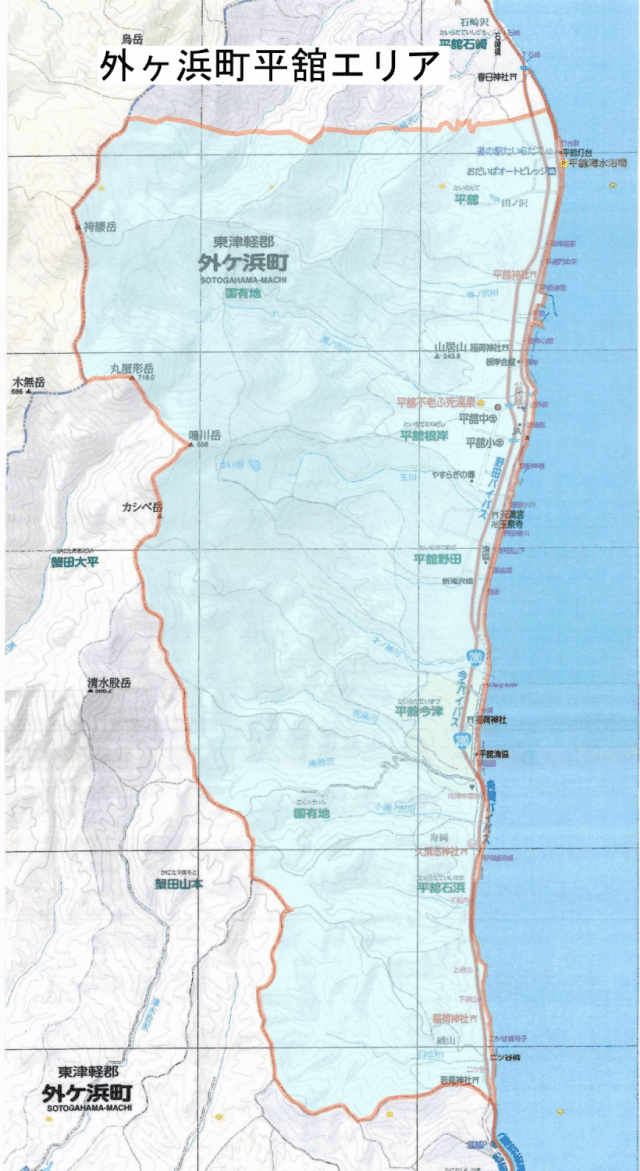 (外ヶ浜町平舘支所までの移動時間 約1時間15分)