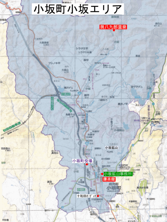 主な町名 | 小坂町小坂・小坂町小坂鉱山(エリア図のとおり) |