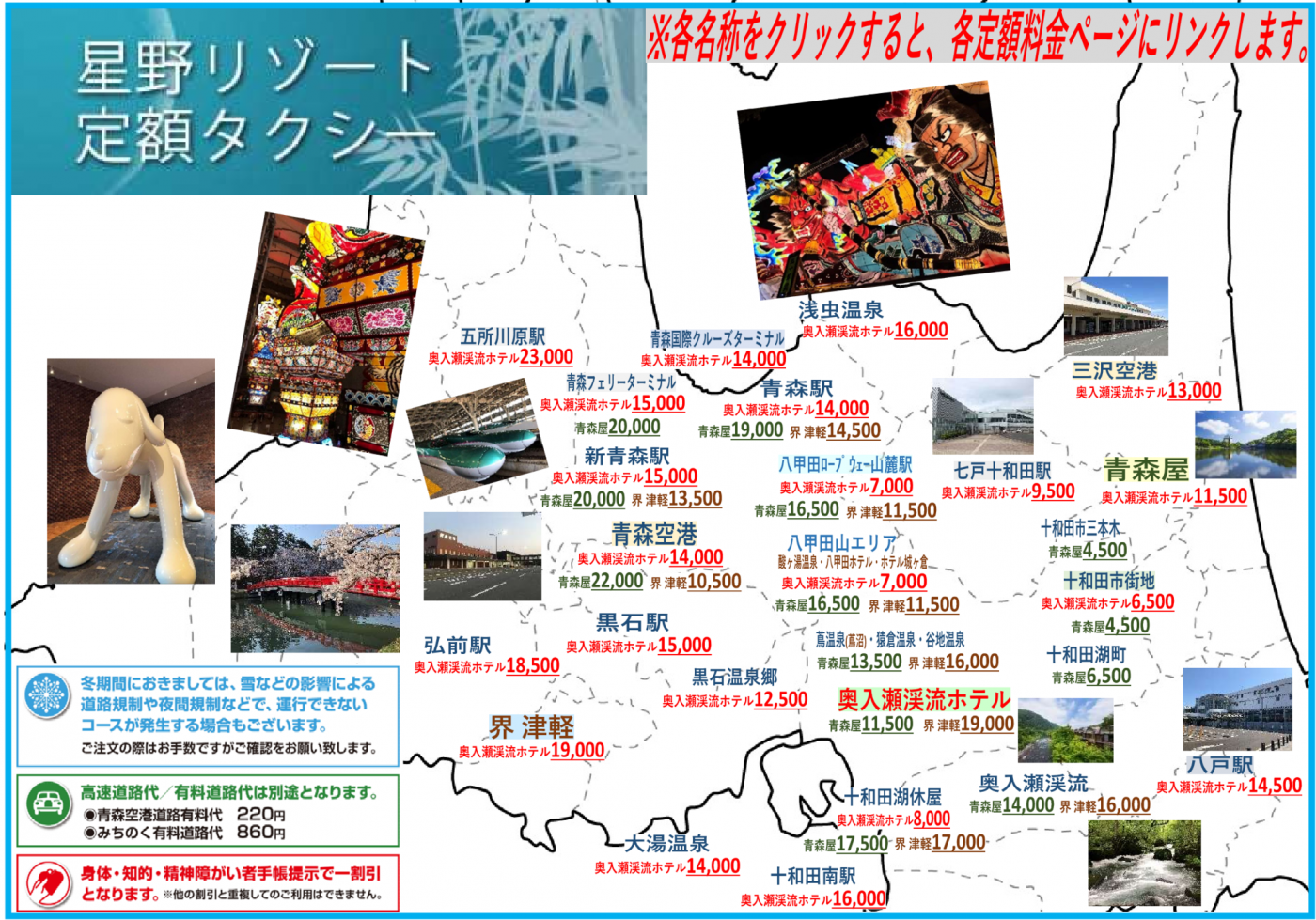 星野リゾート タクシー料金|【安くてお得な定額料金】|青森タクシー
