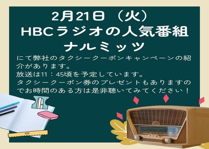 2月21日(火)11時45分〜 HBCラジオ ナルミッツ