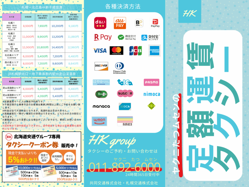 札幌地区における定額運賃は令和6年4月15日をもって終了いたします。詳しくは新着情報をご覧ください。