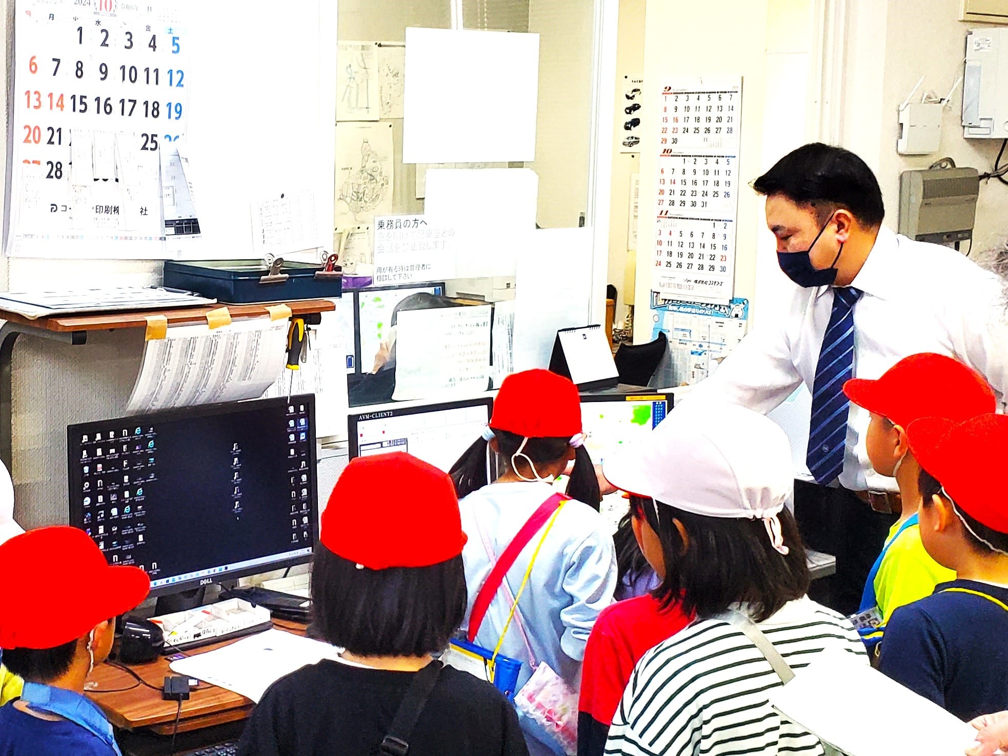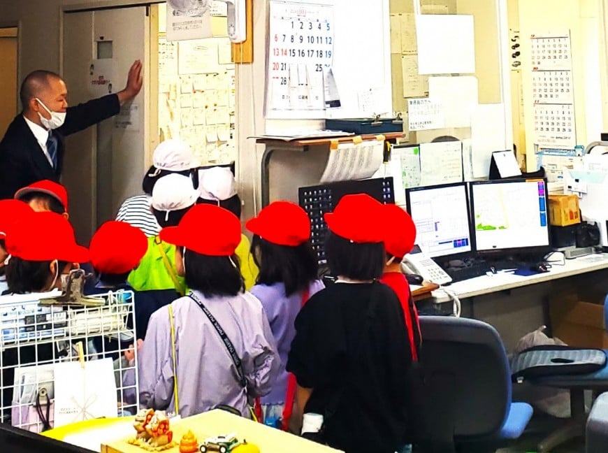 平和交通-地域密着やイベントPhoto国見小学校まち探検で平和交通に児童が毎年訪れる 一覧へ戻る2024.10.22 国見小学校児童まちたんけん平和交通には毎年、国見小学校の児童が課外授業の「まちたんけん」で会社見学に訪れます。どの子供たちも元気いっぱいで楽しいひと時になります。平和交通では、通常、毎年恒例で児童に「配車システム・GPSによる車両情報」「実際のタクシーで自動ドアの説明」「会議室でタクシーについてのお勉強と質問コーナー」の3本柱で会社を案内します。 今年は、子供たちが自分たちで車内清掃用の掃除機に吸われていました!
