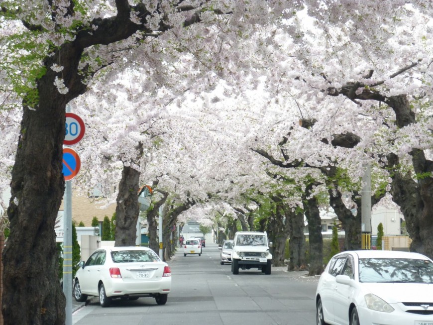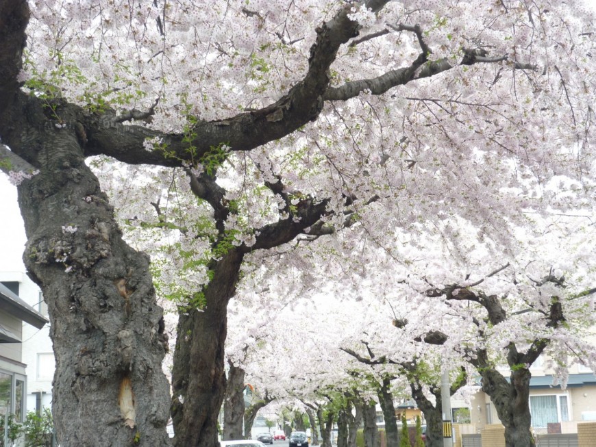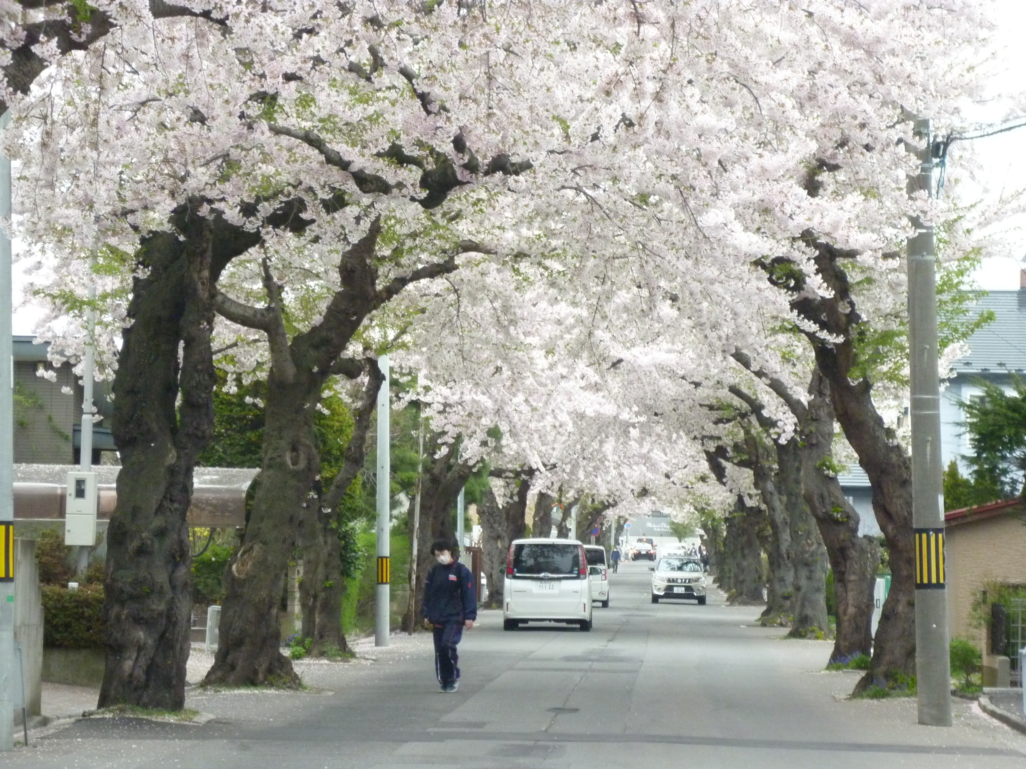 桜が丘通のさくらのトンネル、およそ800mに約100本のさくらが.....(しかも、手をのばせば届くほど桜の華達が近い)