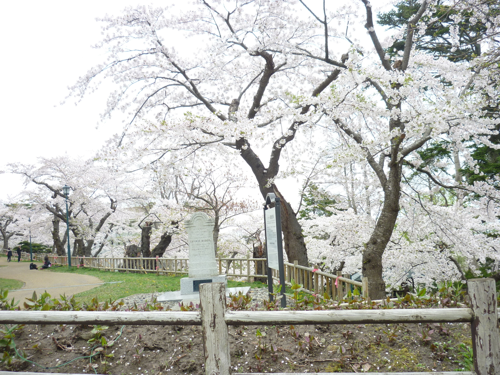 函館公園の桜は、約400本の桜 (函館山を背景に津軽海峡が近く明治山から桜と津軽海峡が一望できる)