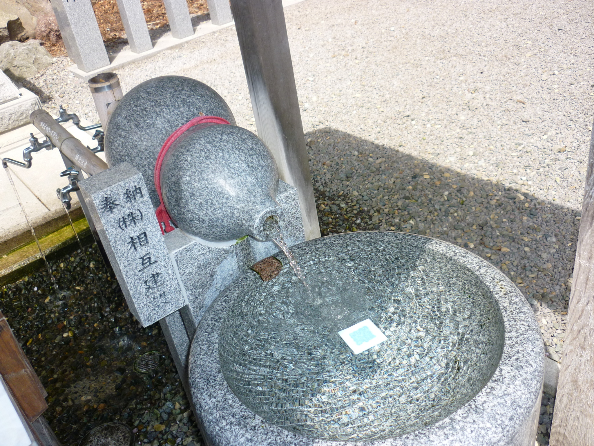 三嶋神社へと進みます。この神社では湧き出る神水に神社で販売している紙を浮かべると、文字が一文字浮かび上がります。
