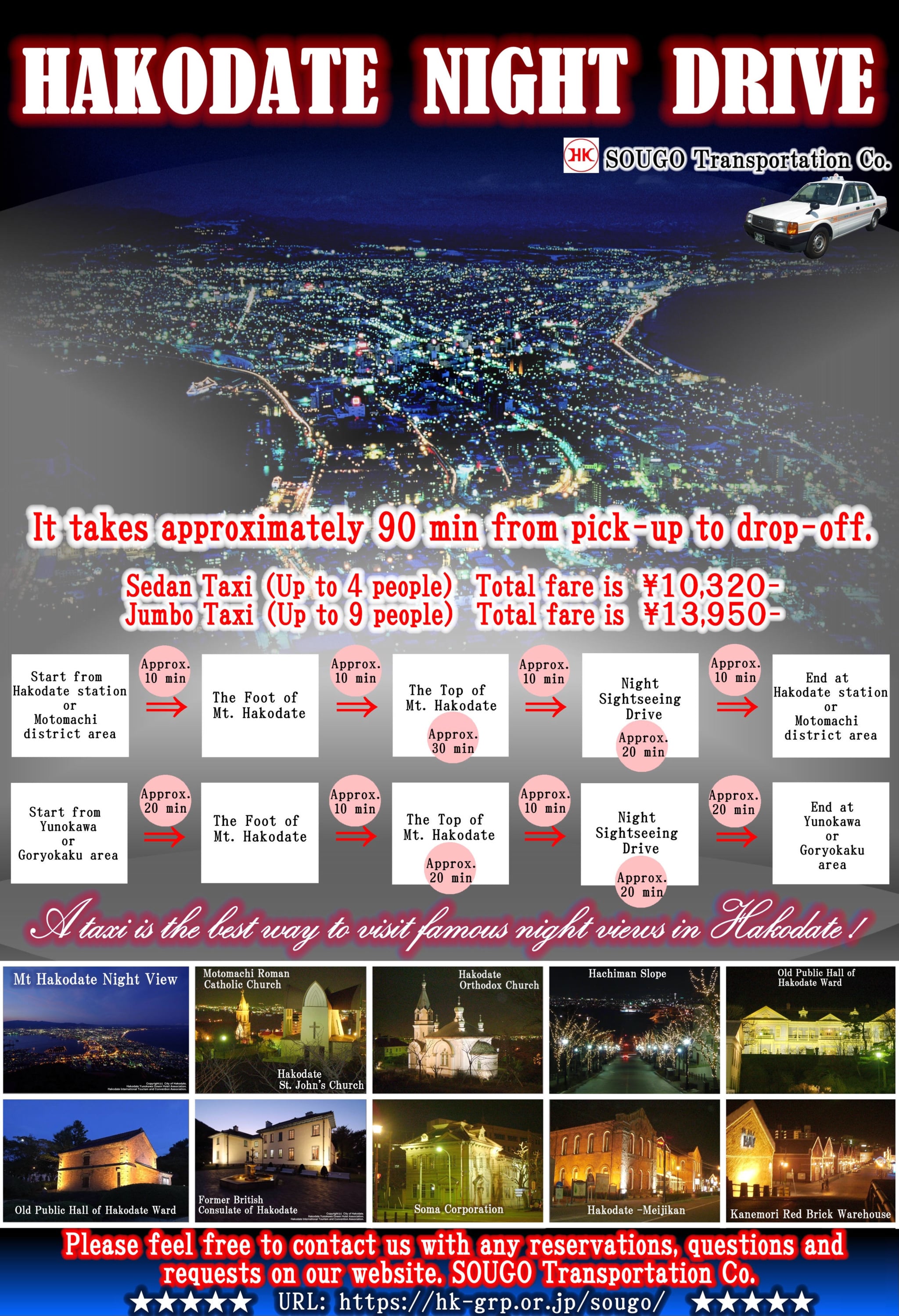 ご当地タクシーの函館観光モデルコース!(時間やご予算など、お気軽にご相談下さい)