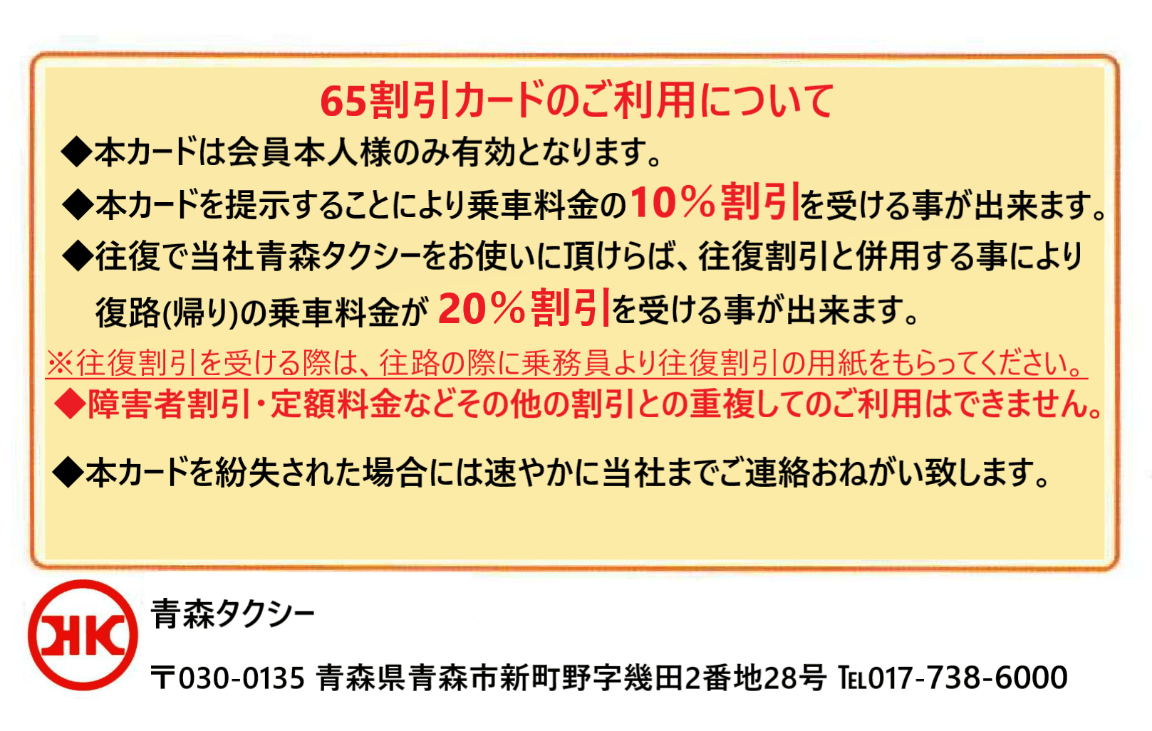 お得な割引|シニア(65)割引|青森タクシー