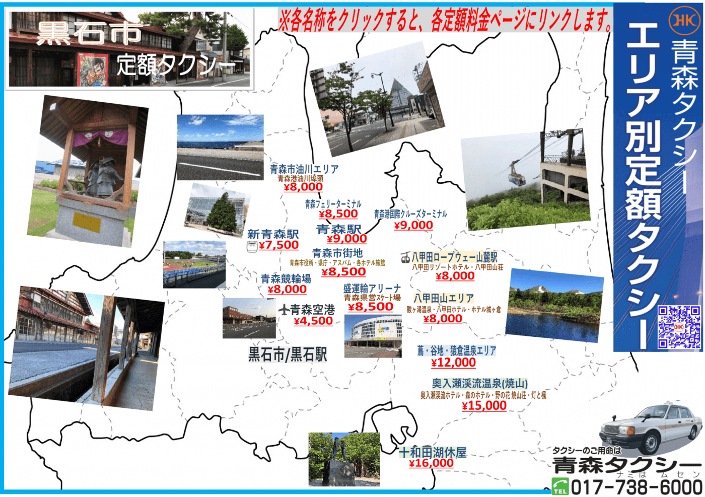 ①メーターより安い「定額料金」だから料金が高額になる心配はありません!②ドア・ツゥ・ドアで快適、青森空港・八甲田・十和田・奥入瀬など青森県内各地から黒石市へ、又ご自宅から青森空港や新青森駅へらくらく移動!③乗換え無しだから、時間を気にせず時間に余裕をもって移動できます!