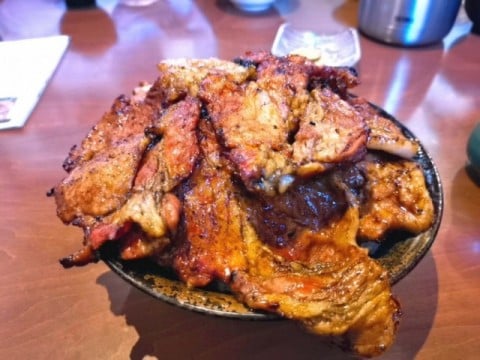 スタミナ丼。ニンニクがきいた、甘辛ダレのお肉に…黄身がトローリ。サイコーです