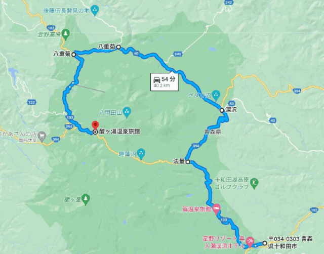 ※当日の天候状況により田代平40号線が通行止めとなった場合は、みちのく有料道路から十和田市経由のルート(冬期定額料金21,000円※ジャンボタクシー料金30,500円)となりますのご了承下さい。