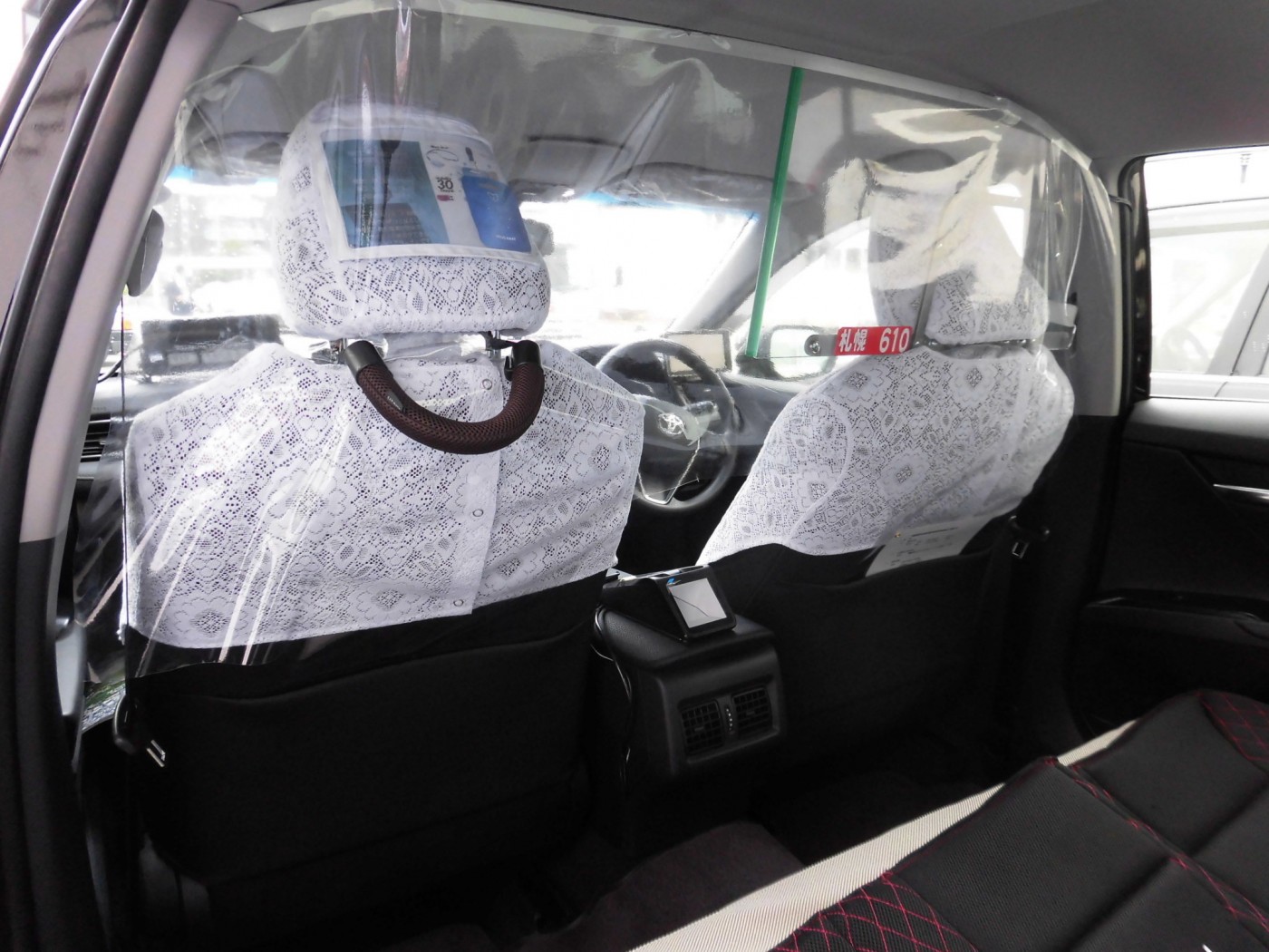 ・後部座席と運転席を隔てる飛沫防止シート、全面防犯ボードの設置