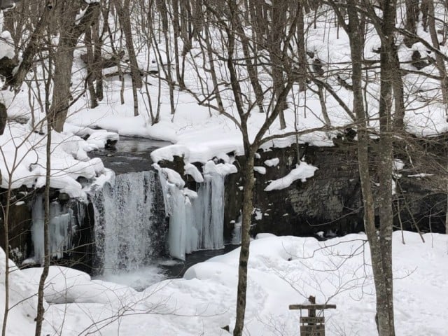 奥入瀬渓流温泉から、十和田湖子ノ口まで約14Kの奥入瀬渓流を、石ヶ戸休憩所、雲井の滝、銚子大滝など主要な場所を見学しながら、冬の奥入瀬渓流を満喫するお手頃なコースです。