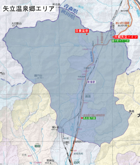 矢立温泉郷エリアの主な適用地域