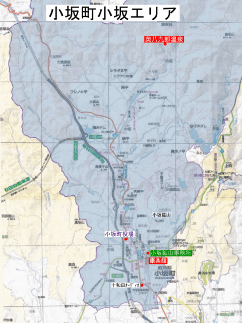 主な町名 | 小坂町小坂・小坂町小坂鉱山(エリア図のとおり) |