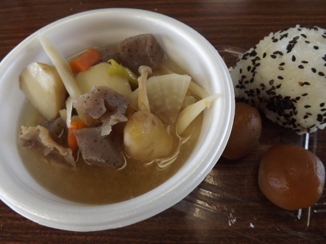 平和交通-福利厚生不定期開催!平和交通で働く全員が参加できるパーティー 2014.10/7 振る舞い 豚汁平和交通では、不定期ではございますが、社内にて平和交通で働く全員が参加できるささやかなパーティーを開催しております。 事務所・工場で働く管理者たちが準備しドライバーさんなどみんなに振る舞いみんなでお食事します。 今回は秋の芋煮会シーズンにちなみ、「仙台芋煮(豚汁)」+「玉コン」に「おにぎり」を振る舞いました! 一覧へ戻る