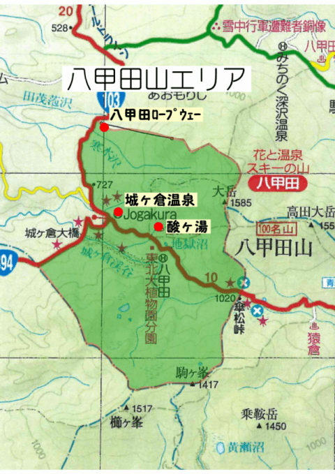 主な施設 ホテル | 城ヶ倉大橋・八甲田ホテル・酸ヶ湯温泉・ホテル城ヶ倉 |