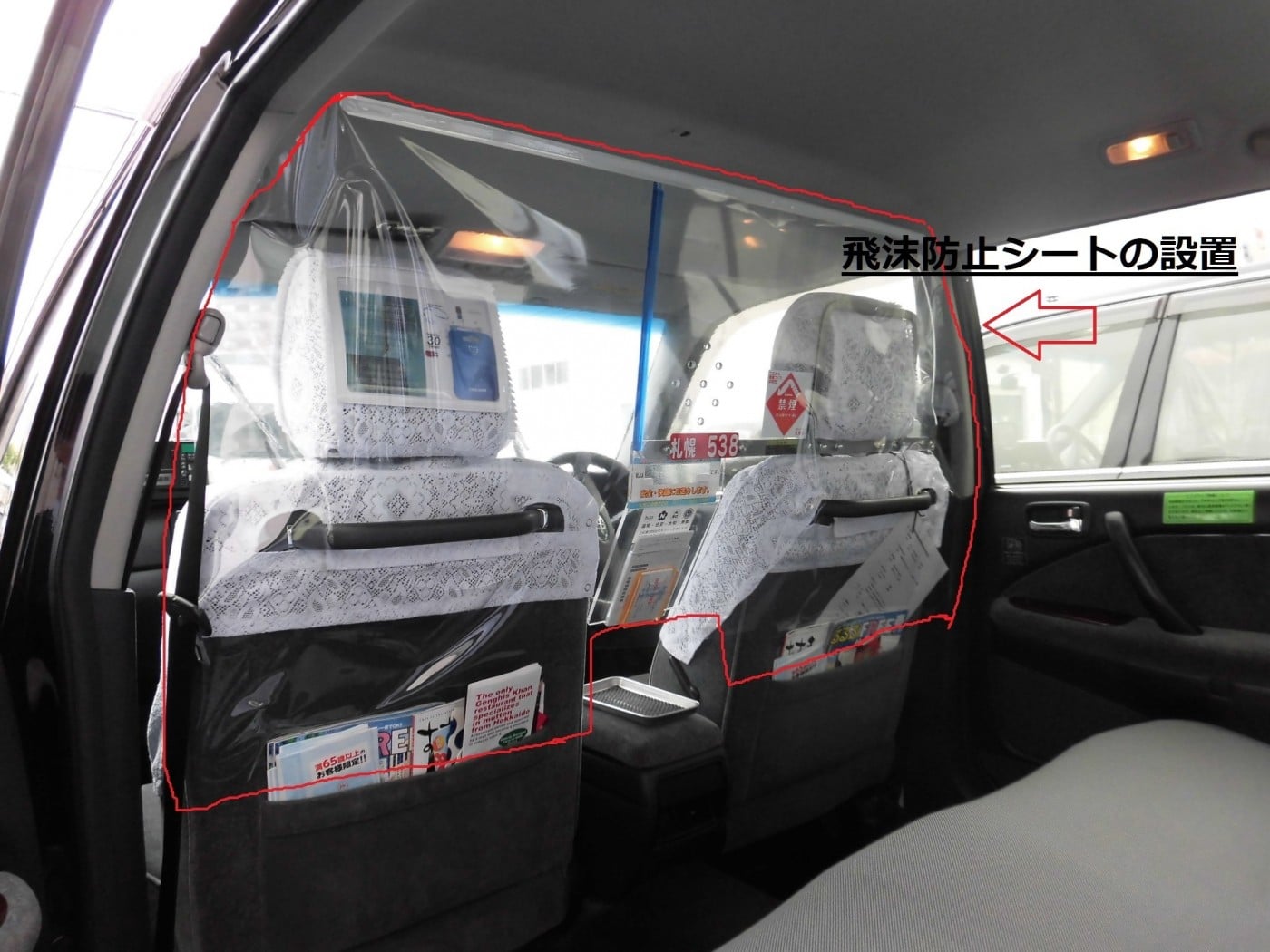 ・後部座席と運転席を仕切る飛沫防止シート・全面防犯ボードの設置