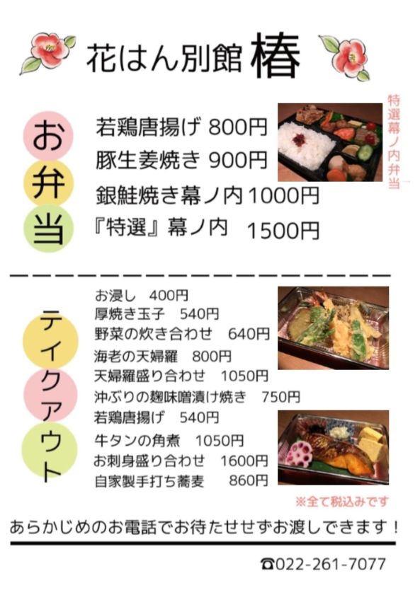 <花はん別館 椿のお弁当> 詳しくはコチラをクリック