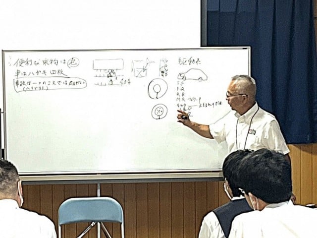 平和交通-地域密着やイベントPhoto外部講師による「目指そう事故0講習会」 2025.6/18 あなたの運転再チェック平和交通で外部から講師を招き、交通事故0を目指す講習会を行いました。タクシー乗務員に必要なスキルだけではなく、車の特性や運転操作についてとても為になる講義でした。今回の講師はブレインズモータースポーツクラブ国内A級コース審判高橋 正男様一覧へ戻る