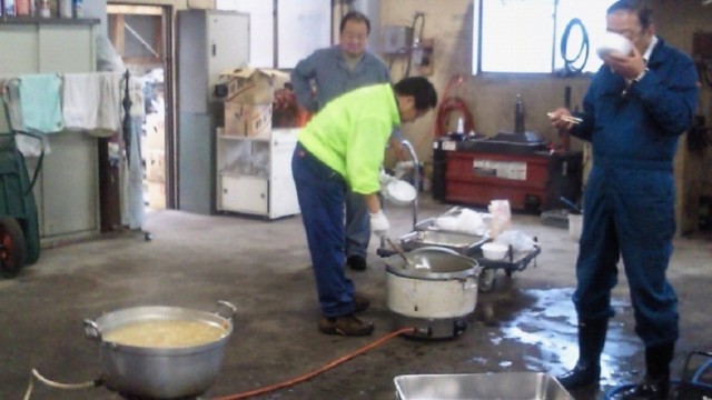 平和交通-地域密着やイベントPhoto不定期開催!平和交通で働く全員が参加できるパーティー 2012.5/3 振る舞い 豚汁平和交通では、不定期ではございますが、社内にて平和交通で働く全員が参加できるささやかなパーティーを開催しております。 事務所・工場で働く管理者たちが準備しドライバーさんなどみんなに振る舞いみんなでお食事します。 今回は大きな鍋を使った「豚汁」を振舞いました。さすがに大量に作ったのでおいしく出来上がりました! 一覧へ戻る