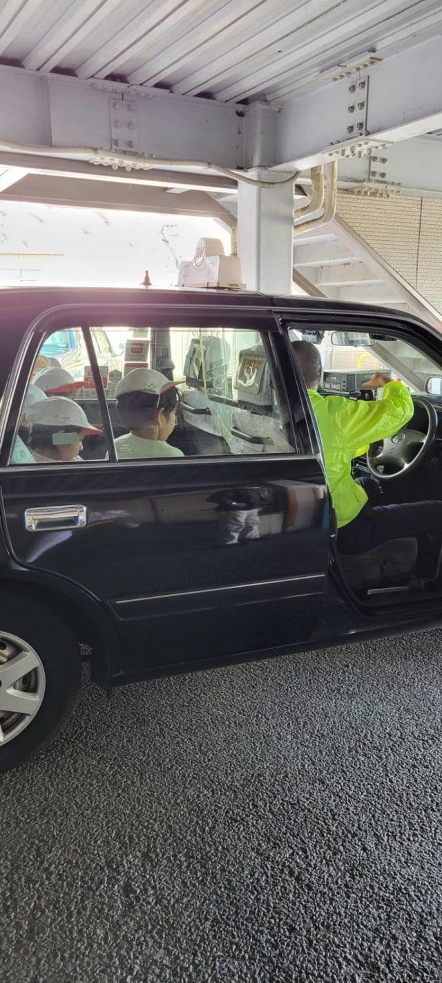 平和交通-地域密着やイベントPhoto国見小学校まち探検で平和交通に児童が毎年訪れる 2023.10.17 国見小学校児童まちたんけん平和交通には毎年、国見小学校の児童が課外授業の「まちたんけん」で会社見学に訪れます。どの子供たちも元気いっぱいで楽しいひと時になります。平和交通では、通常、毎年恒例で児童に「配車システム・GPSによる車両情報」「実際のタクシーで自動ドアの説明」「会議室でタクシーについてのお勉強と質問コーナー」の3本柱で会社を案内します。 今年は、子供たちが自分たちで車内清掃用の掃除機に吸われていました!一覧へ戻る
