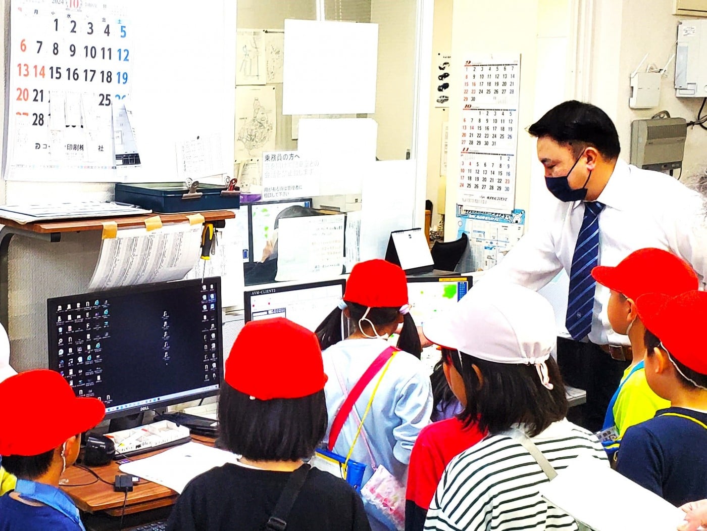 国見小学校まち探検で平和交通に児童が毎年訪れる