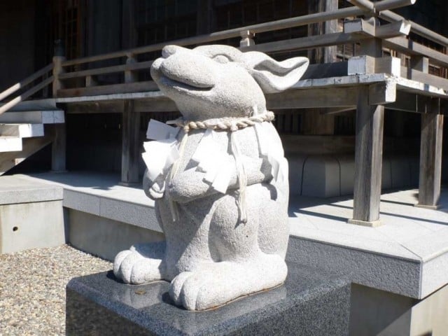 湯倉神社では、大国主神の神獣『なで兎』が……御祭神への参拝後に、撫でながら願い事をしてみのも吉となるのでは?