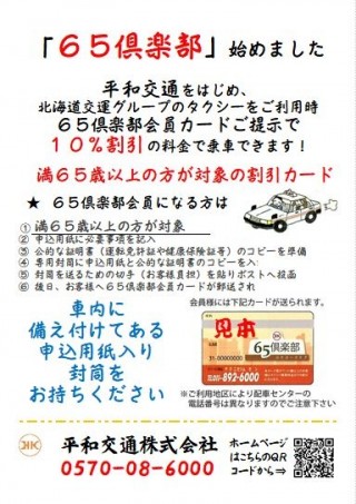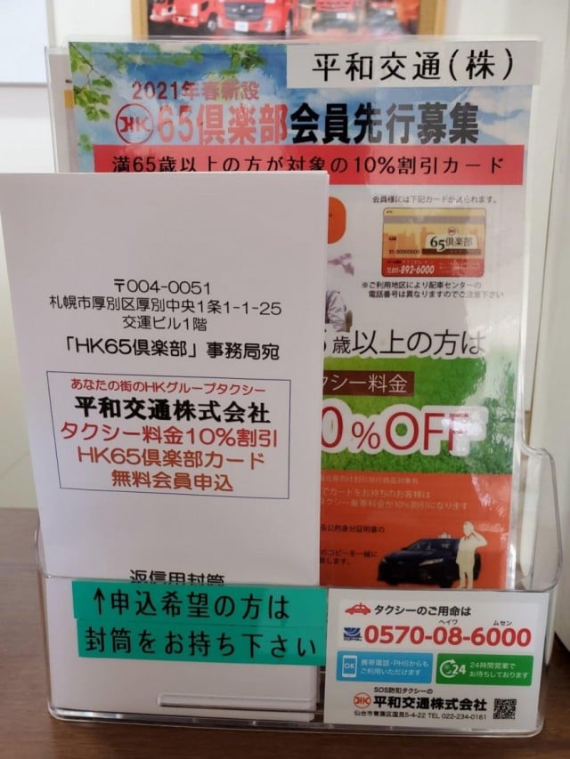 申込用紙は平和交通のタクシー車内にも設置、及び乗務員が常備しております!