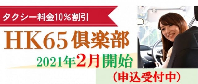 HK65倶楽部は高齢者(65歳以上の方)の皆様がもっと気楽にタクシーが利用出来、街での買い物や食事を楽しんで頂けることで弊社も当然ながら街全体の活気にも繋がるサービスです。