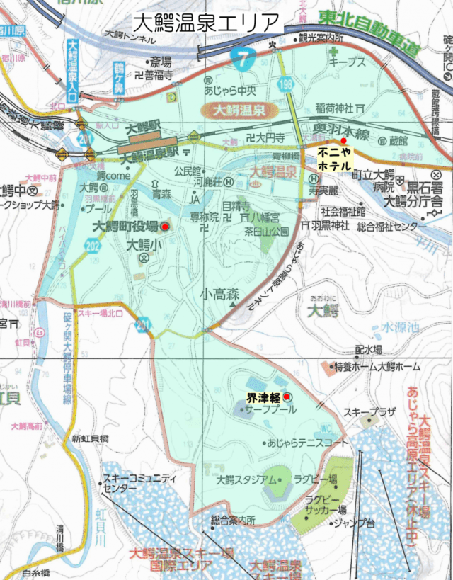 主要城镇名称 | Kurakan、Owani、Niigai、Hagurokan、Natsuzawa、Shimobotanmori、Kamibotanmori(根据地区地图) |