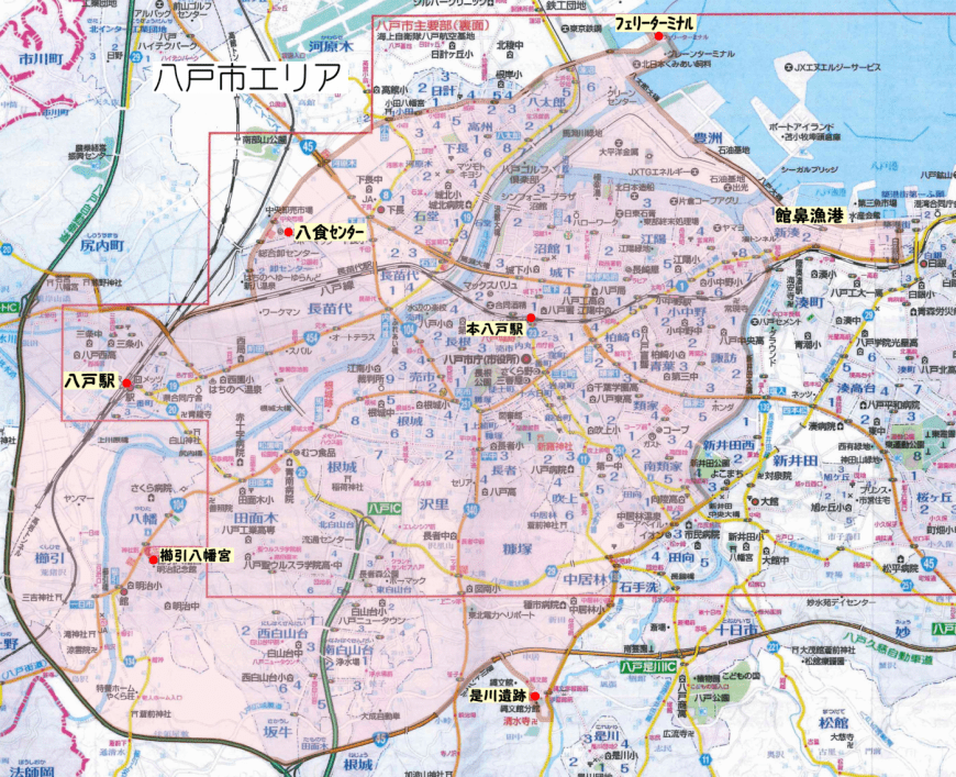 主要城镇名称 | 大字长苗代、批发中心、大字河原木神才、长苗代、根城、卖场、长根、城下町、内丸、大字新荒町、大字糠塚下屋敷、大字稻荷町、大字荒町、大字廿三日町、大字徒士町、大字本徒士町、大字 Uriichi 游下、大字堤町、大字马场町、大字十三日町、大字三日町、大字番町、大字堀端町、大字窪町、大字常海町、大字上组町・大字糠塚桝形・大字常番町・大字町组町・大字本锻冶町・大字糠塚下道・大字鸟屋部町・大字十六月町・Oaza Muikamachi ・Oaza Sakuhimachi ・Oaza Iwaizumicho ・Oaza Takajo Koji ・Oaza Nagayokocho ・Oaza Ruike ・Oaza Juichichicho ・Oaza Ruike Tsutsumibat ・柏崎 ・Oaza Minatomachi ・Oaza Shiroganecho ・新凑 ・Konakano ・诹访 ・Ruike Kawaragi, Shiriuchicho, Ichibancho, Kushibiki,田面木、是川、大字石手洗(如地区地图所示) |