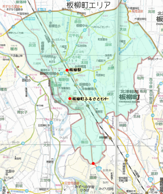 主要城镇名称 | 灰沼、福野田、饭田、横泽、长野、深味、大俵、赤田、三千石、辻、板柳(根据地区地图) |