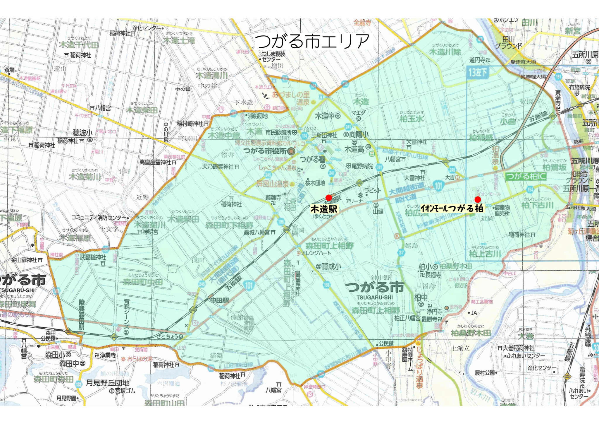 主要城镇名称 | 木造/木造柴田/木造中关/木造中关/木造川岳/柏玉水/柏稻盛/大曲/柏鹭坂/柏下古川/柏广须/柏桑野木田/森田町上相野/森田町下相野/森田町田中(地区) 如图所示) |