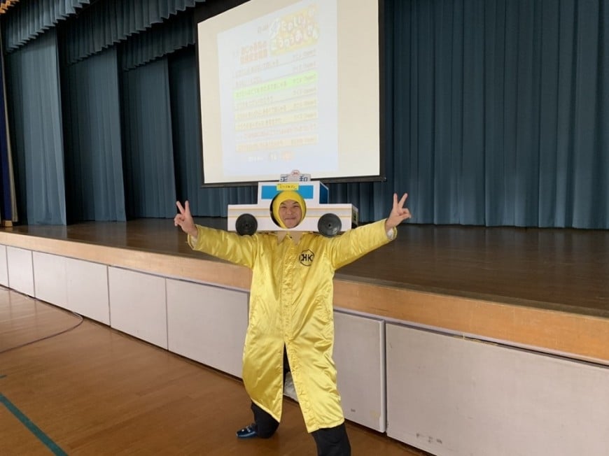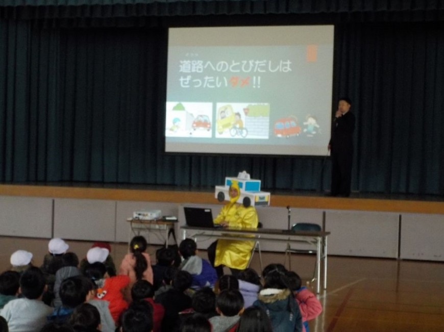 平和交通 - 当地社区和活动照片小学交通安全课 返回列表2019.4/10 国见小学一年级交通安全课在和平交通与一些学校一起,我们还参观了小学并举办了“交通安全课程”。 我们在当地的国见小学为一年级新生举办了交通安全课。 学校老师、警察和和平交通管理人员会告诉这些年轻的一年级学生。 平和交通将使用国见小学附近危险地点的图像和实际行车记录仪图像与孩子们交谈。 戴着头套向一年级学生敞开心扉的“和平人”角色,抓住了心,听故事!