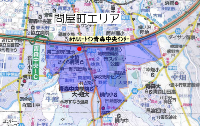 主要设施 酒店 | 主要设施:第一批发住宅小区、第二批发住宅小区、县民局地域振兴部、青森中央学院大学 主要酒店旅馆:HOTEL ROUTE-INN AOMORI CHUO INTER |